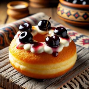 Un donut moelleux à la pâte parfumée au Sagarno (cidre basque), recouvert de